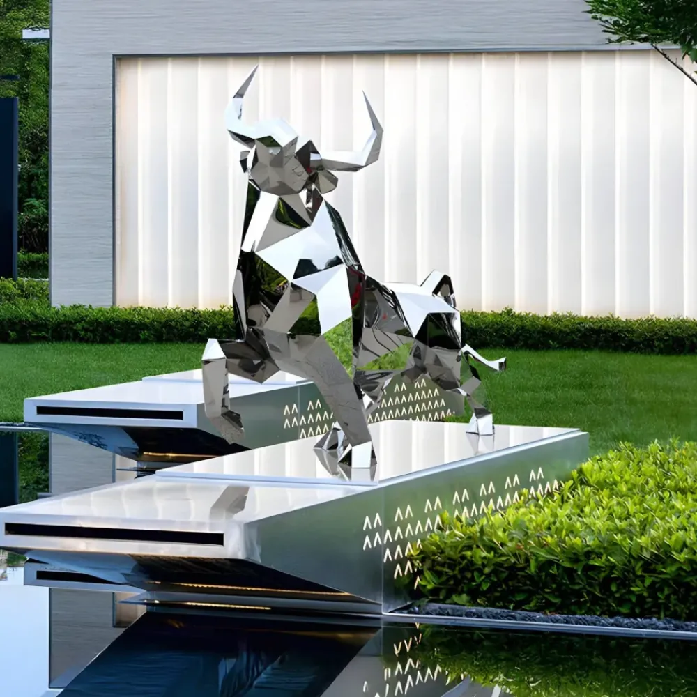 Introducing the Grand Bull Geometric Garden Sculpture: a masterpiece that combines contemporary artistry with meticulous craftsmanship. This design transforms natural elegance into a striking geometric form, with angular facets that reflect light dynamically, creating mesmerising effects that shift with the environment. Constructed from premium stainless steel, its sleek polished finish adds a layer of sophistication making it an eye-catching addition to any space.