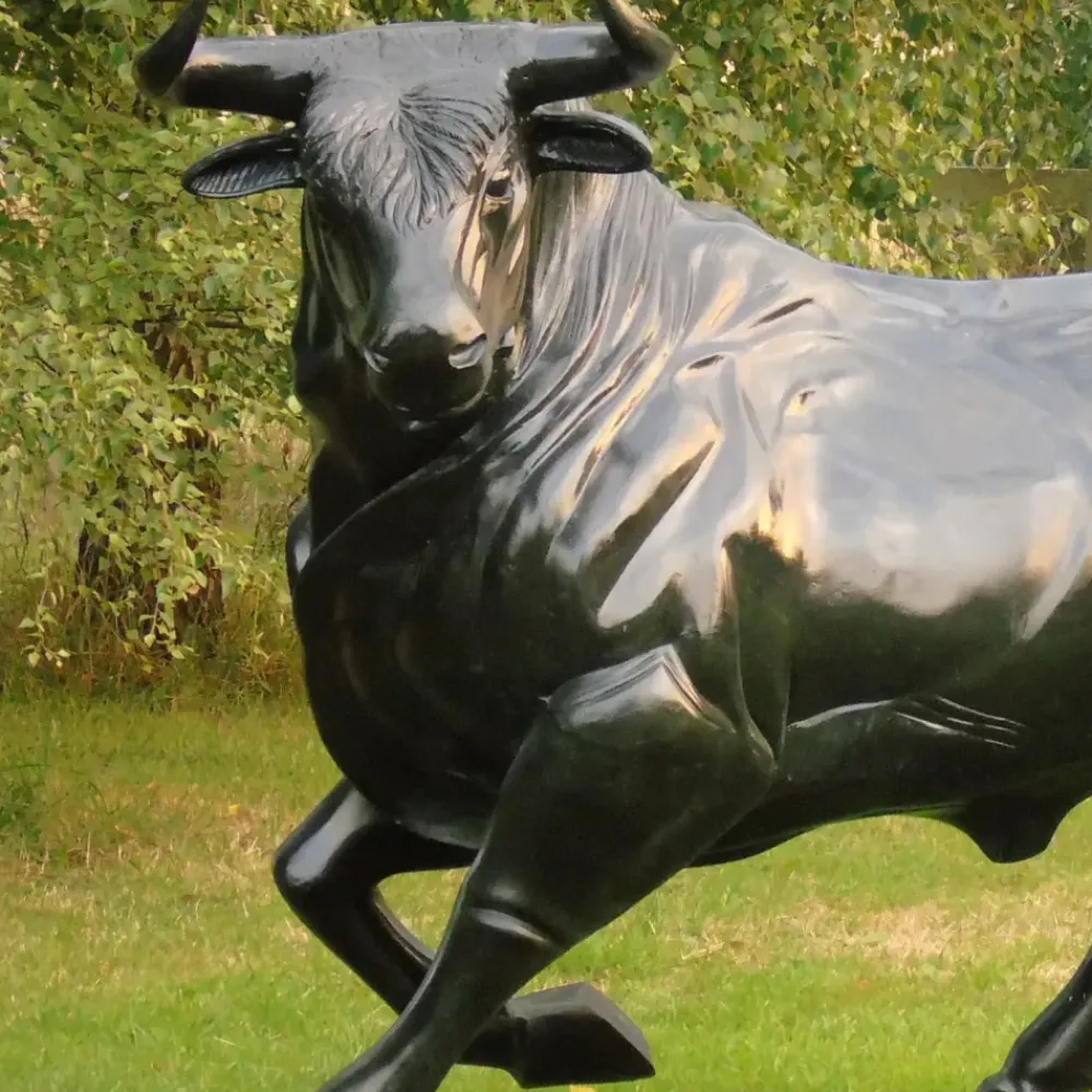 Raging Bull Life-Size Bronze Metal Garden Statue