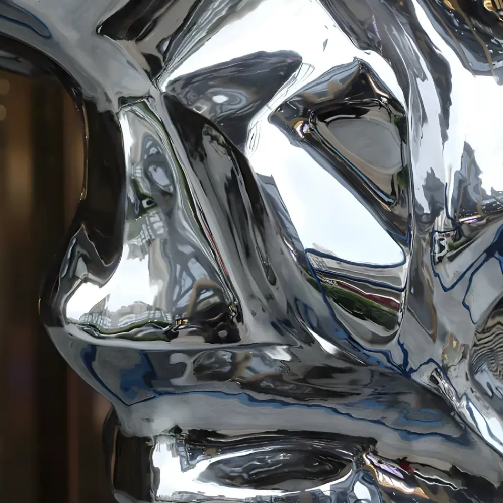 Durable and weather-resistant, the stainless steel construction ensures that this piece maintains its striking appearance over time with minimal maintenance. Its ability to withstand the elements makes it ideal for outdoor placement, while its bold presence equally enhances indoor environments.