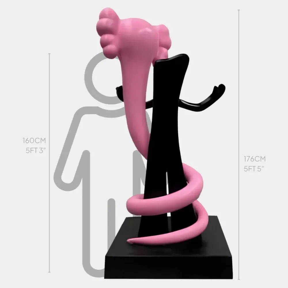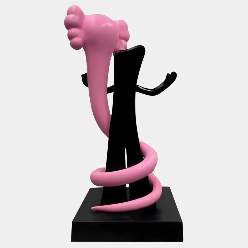 Designed with a slender silhouette and a bold colour palette the sculpture offers a refreshing departure from traditional forms. The fusion of modern minimalism and pop-culture influence results in a piece that is both sophisticated and playful. Its high-gloss finish enhances the vibrancy of the pink viper reflecting light and emphasising its flowing contours. Positioned in a loft, office or stylish interior it becomes an engaging focal point sparking curiosity and conversation. The careful balance of form, colour and craftsmanship ensures the sculpture maintains a timeless appeal while infusing any space with warmth and energy. With its dynamic presence and imaginative design, the Lucify Viper Sculpture transforms its surroundings offering a bold yet elegant expression of contemporary artistry.