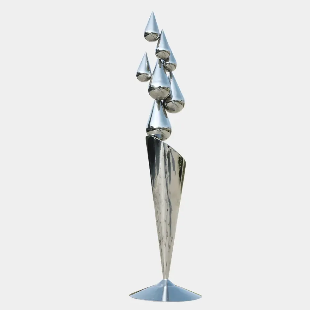 The Raindrop Dream Sculpture is designed to enhance both indoor and outdoor environments offering a seamless blend of aesthetic appeal and durability. Constructed from weather-resistant stainless steel it withstands the elements making it an excellent choice for gardens, patios or landscaped areas, where it harmonises beautifully with natural surroundings. Indoors, it becomes a sophisticated focal point for living rooms, grand entryways or corporate spaces, complementing styles ranging from modern minimalism to classic elegance.