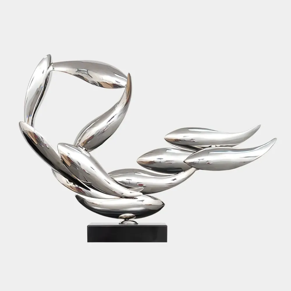 Whether displayed as a focal point in an open space or integrated into a curated collection this contemporary steel sculpture adds refinement and artistry. With its graceful form and timeless appeal it transforms any environment into a place of elegance and inspiration.