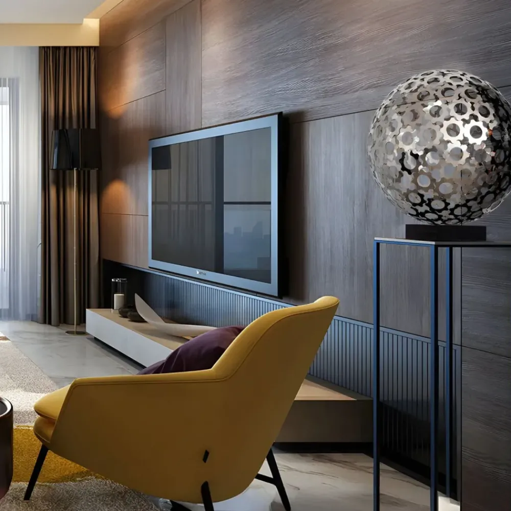 This stainless steel sculpture is designed for both indoor and outdoor spaces offering versatility and lasting appeal. Its weather-resistant construction ensures durability making it an ideal addition to gardens, patios, courtyards or landscaped areas where it interacts beautifully with natural elements. Indoors, it serves as an eye-catching centrepiece in living rooms, office lobbies and entryways effortlessly complementing contemporary, minimalist or industrial décor. The sculpture’s dynamic form and reflective surfaces make it a statement piece that sparks conversation and admiration. Whether placed in an intimate setting or as a bold architectural accent, the Cosmic Sphere Sculpture brings sophistication and artistic expression to any environment creating an engaging and thought-provoking visual experience.