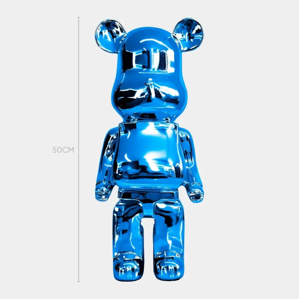 Introducing the Aero Bear Sculpture: a masterpiece that combines luxury and contemporary artistry. Crafted from premium resin this stunning sculpture features a sleek, stylised bear finished with an exquisite electroplated coating. The high-gloss finish achieved through a meticulous process, creates a flawless surface that captures and reflects light, enhancing the bear’s intricate design and graceful form. At 50cm tall, it stands as a bold centrepiece adding sophistication and artistic allure to any space.