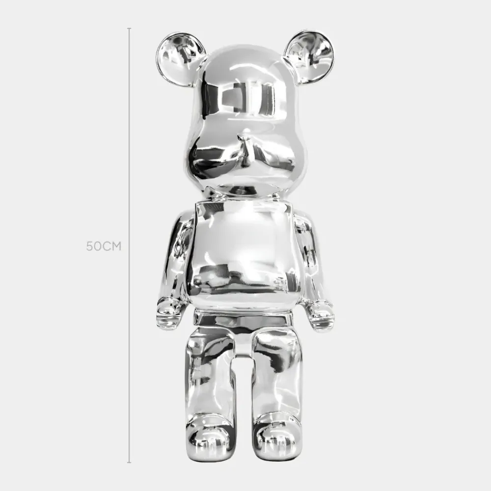 Introducing the Aero Bear Sculpture: a masterpiece that combines luxury and contemporary artistry. Crafted from premium resin this stunning sculpture features a sleek, stylised bear finished with an exquisite electroplated coating. The high-gloss finish achieved through a meticulous process, creates a flawless surface that captures and reflects light, enhancing the bear’s intricate design and graceful form. At 50cm tall, it stands as a bold centrepiece adding sophistication and artistic allure to any space.