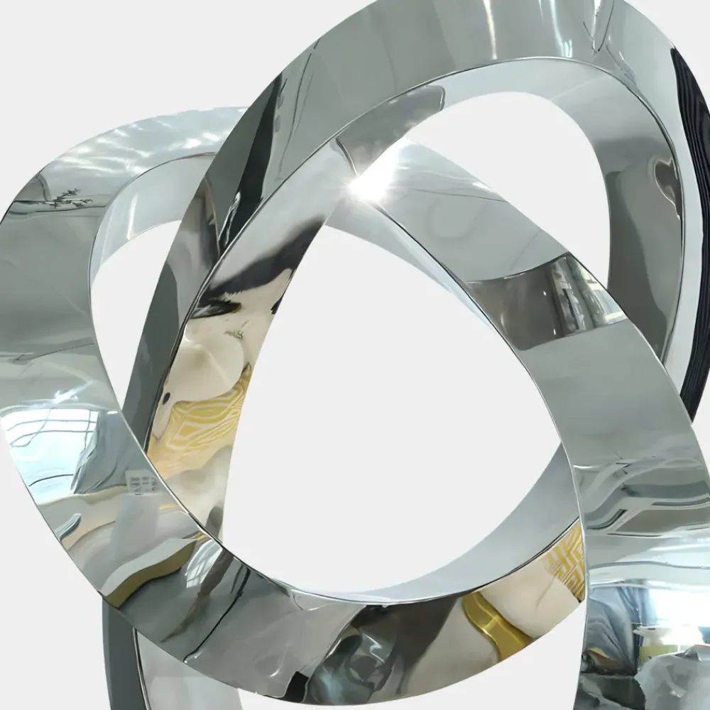 Designed for both indoor and outdoor settings this abstract sculpture blends contemporary aesthetics with enduring craftsmanship. The weather-resistant stainless steel construction ensures durability making it an ideal choice for gardens, patios and landscaped areas where it can engage with natural light and open environments. Indoors, it complements various design styles from sleek modern spaces to eclectic interiors adding depth and refinement to living rooms, offices or grand entryways.