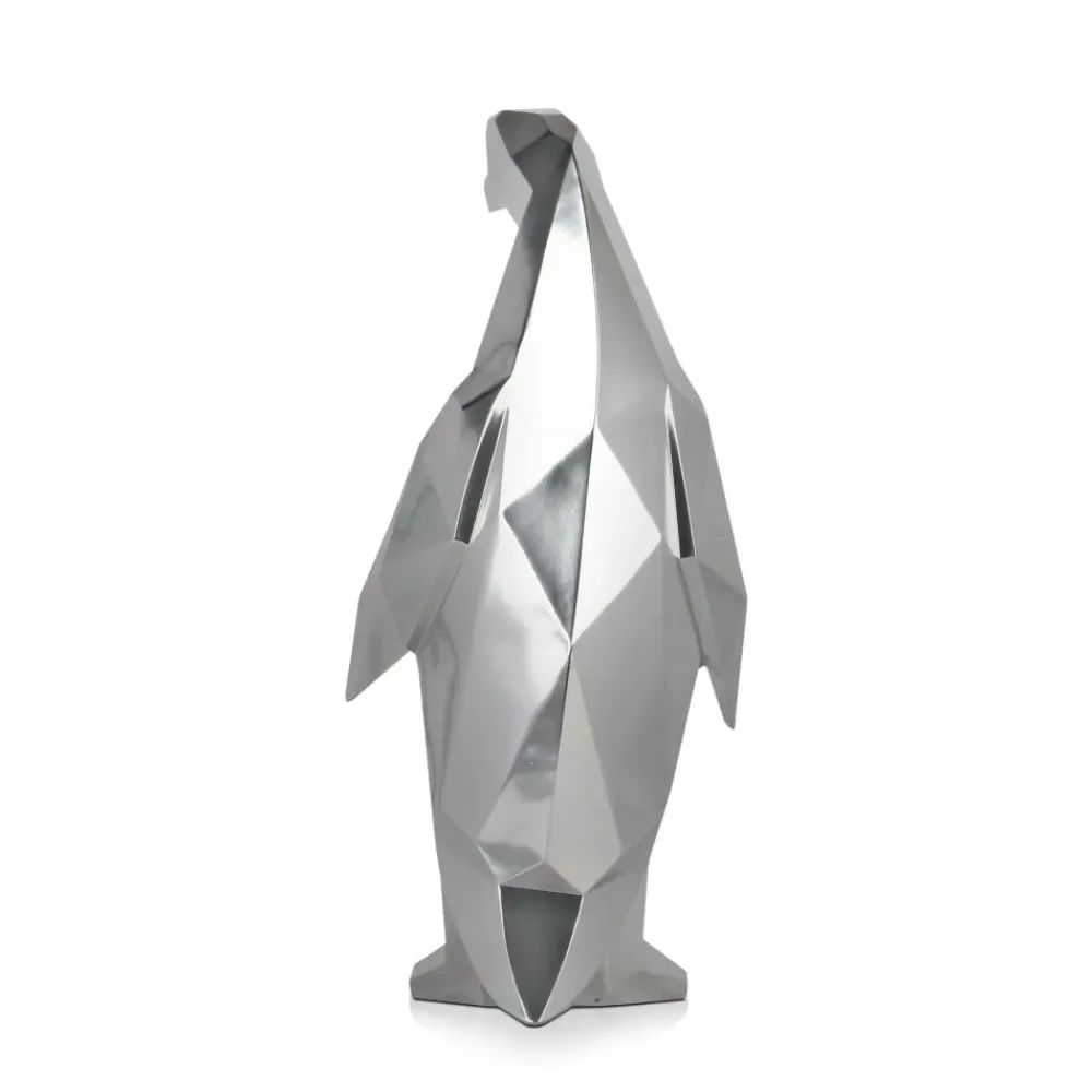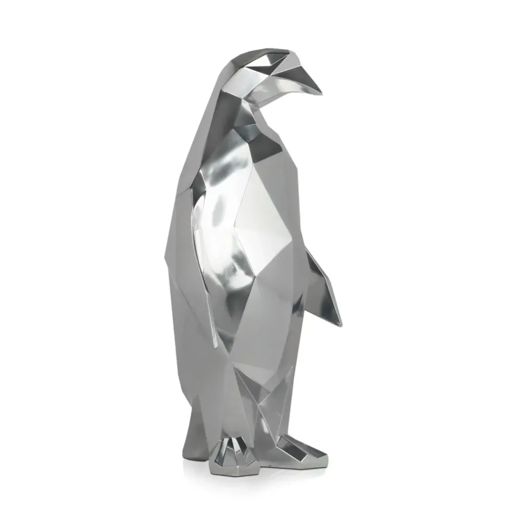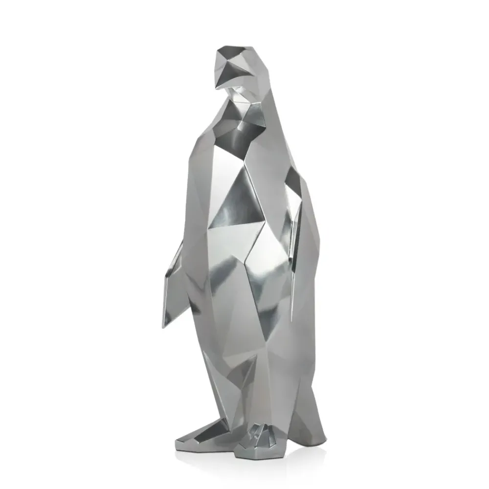 Polygon Penguin 50cm Silver Resin Indoor Sculpture