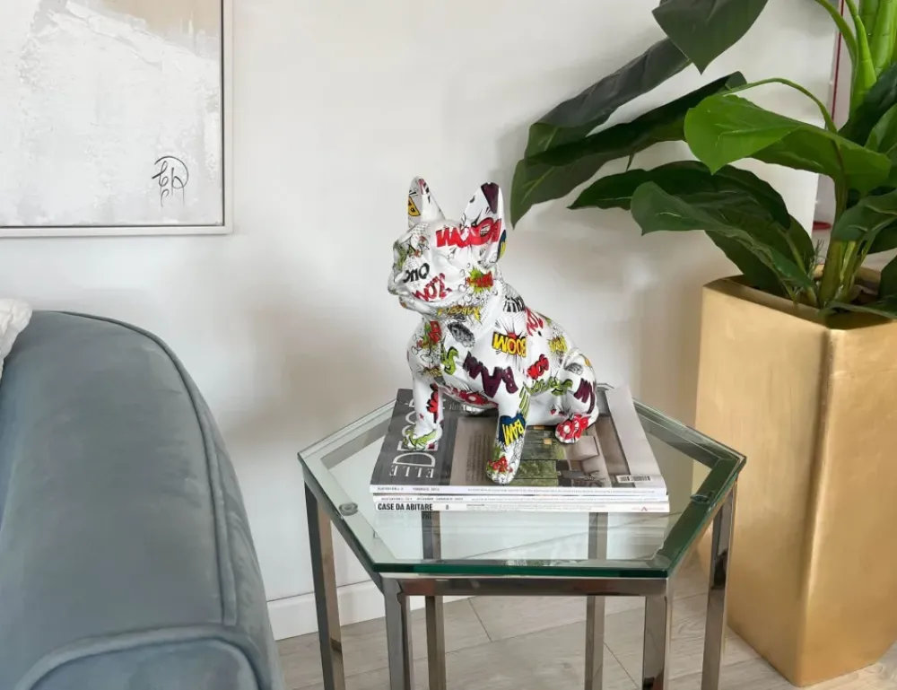 Our French Bulldog Sculpture Goes Beyond Mere Decoration: It’s a lively expression of your style and crafted to infuse your home with energy, colour and personality. Handcrafted by skilled artisans with great attention to detail, this sculpture is designed to add energy, colour and character to your home. It’s not just about filling a space; it’s about making your home feel truly personal, warm and alive with your style.
