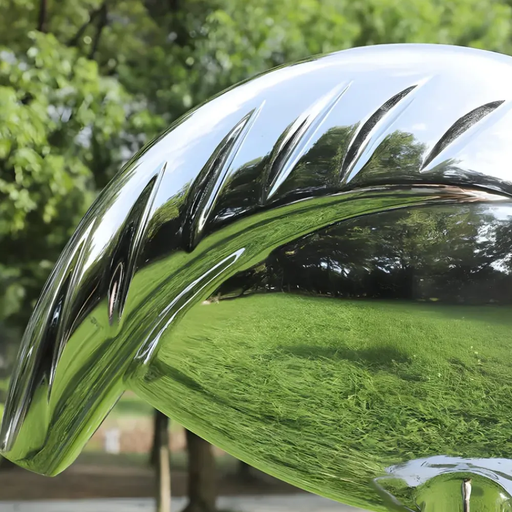 Built to last, its durable stainless steel construction ensures longevity and makes it suitable for outdoor use. Resistant to weather and the elements, this sculpture maintains its polished finish throughout the seasons providing a timeless aesthetic appeal. Its contemporary style harmonises effortlessly with both modern and traditional architectural settings.