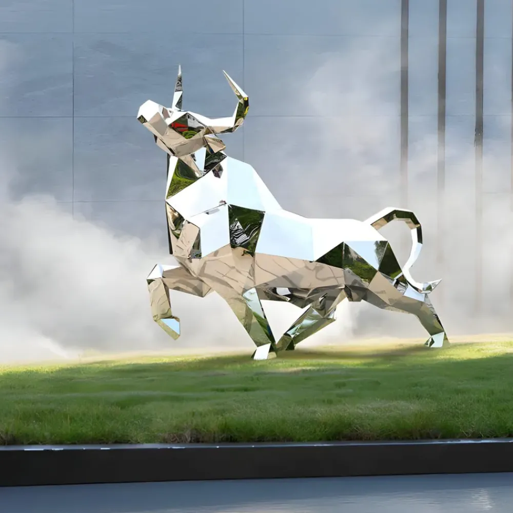 Introducing the Grand Bull Geometric Garden Sculpture: a masterpiece that combines contemporary artistry with meticulous craftsmanship. This design transforms natural elegance into a striking geometric form, with angular facets that reflect light dynamically, creating mesmerising effects that shift with the environment. Constructed from premium stainless steel, its sleek polished finish adds a layer of sophistication making it an eye-catching addition to any space.