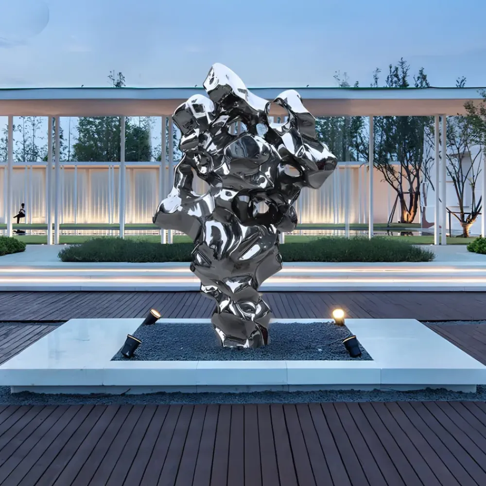 This contemporary sculpture is highly versatile and perfectly suited for a variety of settings, whether indoors or outdoors. It can serve as a dramatic focal point in landscaped gardens adding a touch of modern sophistication to natural spaces. In luxury lobbies, it creates a statement of elegance and artistic flair, while in spacious interiors it becomes a conversation piece that elevates the aesthetic of the room.