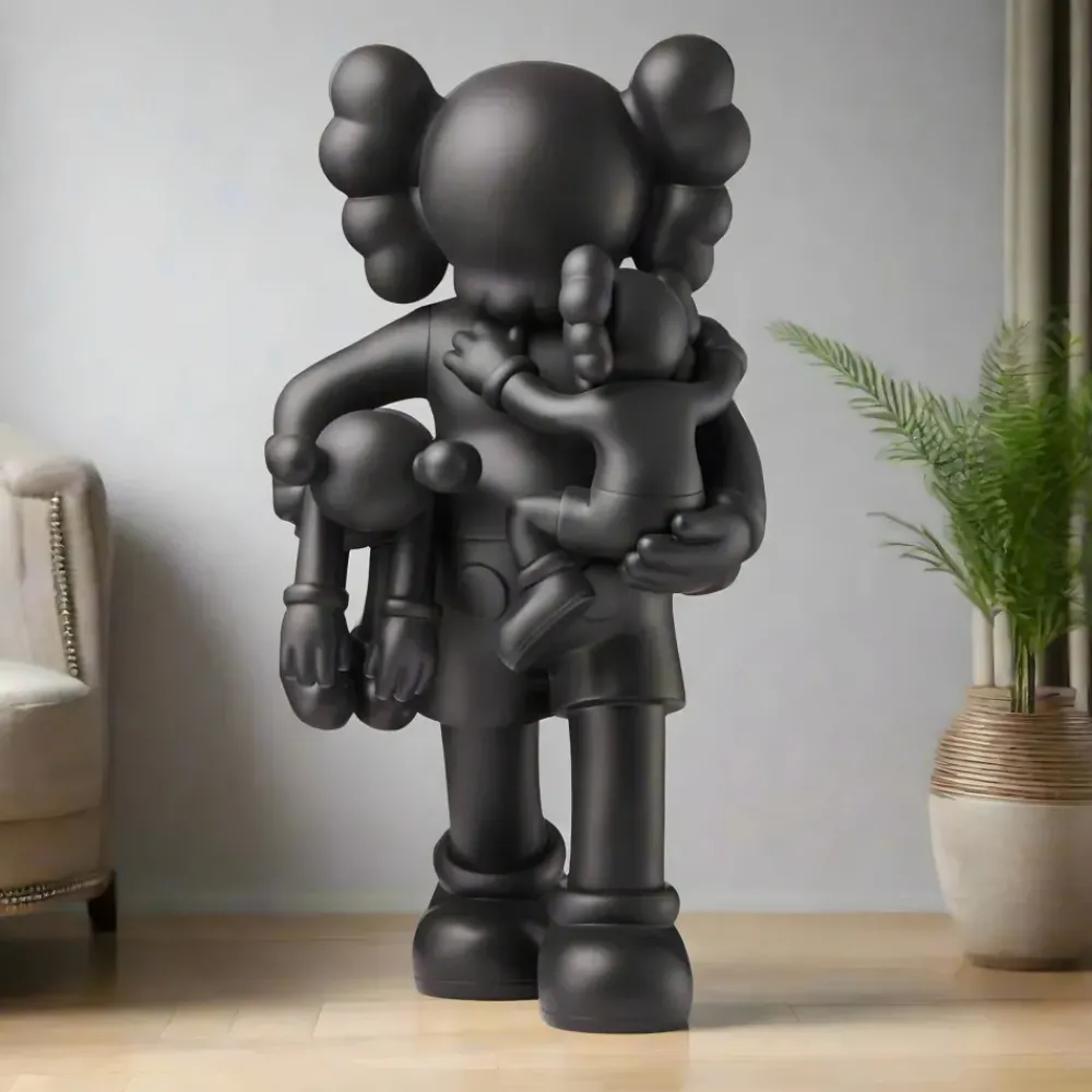 The Lucify Go Sculpture is a striking representation of connection and modern artistry. Crafted from durable resin it features a tall central figure embracing smaller companions in a fluid harmonious form. Its sleek midnight black finish enhances the sculpture’s depth allowing light and shadow to play across its smooth surfaces. The contrast between its structured composition and gentle flowing curves creates a captivating balance of strength and warmth. With its refined presence this piece serves as an elegant focal point in living spaces, hotel lobbies and corporate interiors drawing admiration for its understated sophistication.