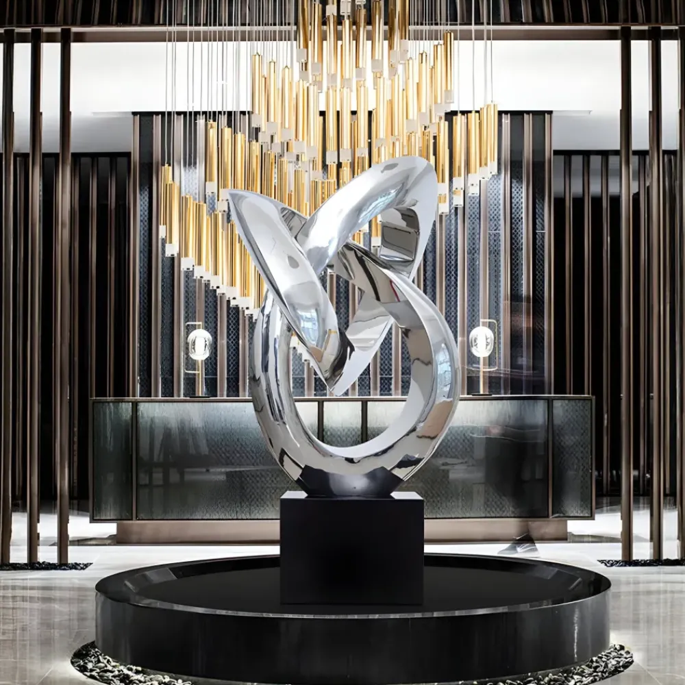 The Infinity Fusion Sculpture is designed to enhance both indoor and outdoor environments with its timeless appeal and durable construction. Its robust stainless steel composition ensures longevity, making it suitable for gardens, patios and landscaped areas where it seamlessly integrates with natural surroundings and architectural features. Indoors, it serves as a sophisticated focal point in living rooms, lobbies or art galleries complementing styles ranging from minimalist to contemporary.