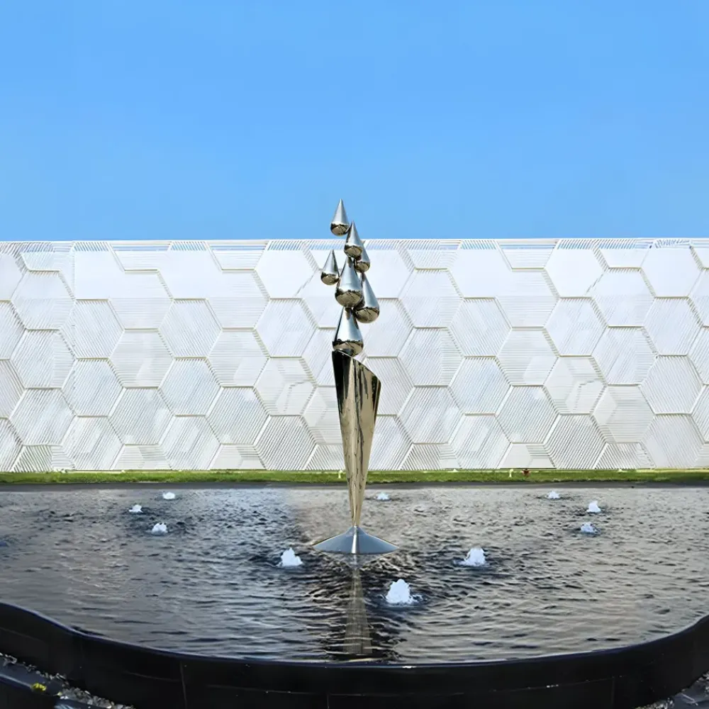 The Raindrop Dream Sculpture is designed to enhance both indoor and outdoor environments offering a seamless blend of aesthetic appeal and durability. Constructed from weather-resistant stainless steel it withstands the elements making it an excellent choice for gardens, patios or landscaped areas, where it harmonises beautifully with natural surroundings. Indoors, it becomes a sophisticated focal point for living rooms, grand entryways or corporate spaces, complementing styles ranging from modern minimalism to classic elegance.