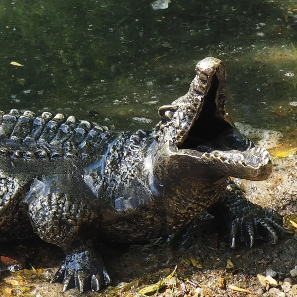 Baby Crocodile Bronze Metal Garden Ornament