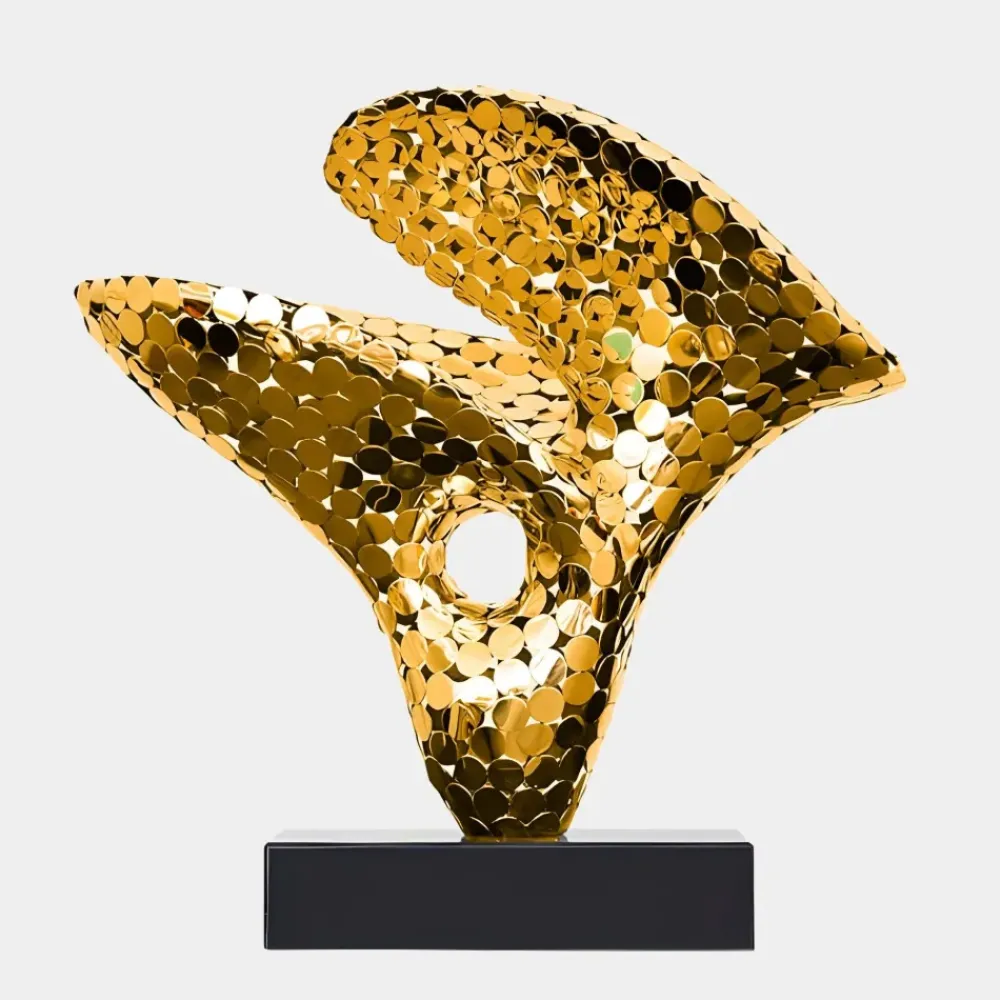 Whether displayed as a bold statement in an open space or as an accent within a curated interior this sculpture transforms its surroundings with artistic impact. Its fluid form durable construction and reflective qualities make it a timeless investment embodying the essence of modern design.
