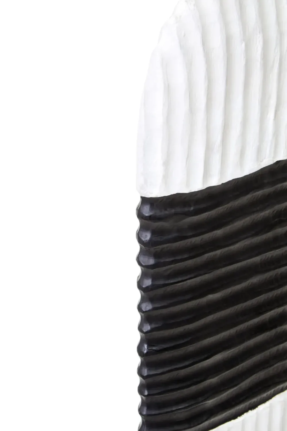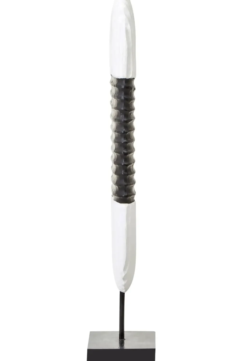 Overview: Outstanding in style this home decor sculpture is perfect as a centrepiece in the modern home. This sculpture is finished in wonderfully sleek black & white and when viewed closely you will see the marks of handcraft and individualities of every piece.
