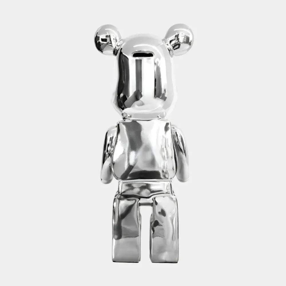 Introducing the Aero Bear Sculpture: a masterpiece that combines luxury and contemporary artistry. Crafted from premium resin this stunning sculpture features a sleek, stylised bear finished with an exquisite electroplated coating. The high-gloss finish achieved through a meticulous process, creates a flawless surface that captures and reflects light, enhancing the bear’s intricate design and graceful form. At 50cm tall, it stands as a bold centrepiece adding sophistication and artistic allure to any space.