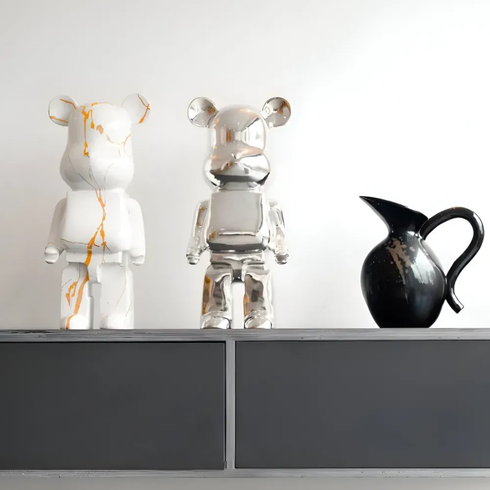 Discover the captivating Aero Bear Sculpture: a contemporary masterpiece that merges sleek design with exceptional artistry. Crafted from premium-quality resin, this striking sculpture features a water-transferred finish that authentically mimics the luxurious texture of natural materials. Its stylised form is characterised by intricate geometric facets and smooth contours, creating a bold visual statement. The reflective surface adds depth and enhances its contemporary appeal, making it a standout addition to any setting.