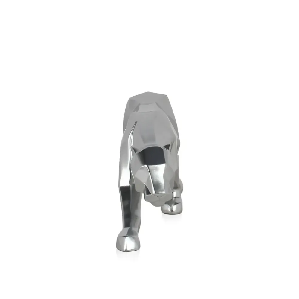 Polygon Panther 14cm Silver Resin Indoor Sculpture