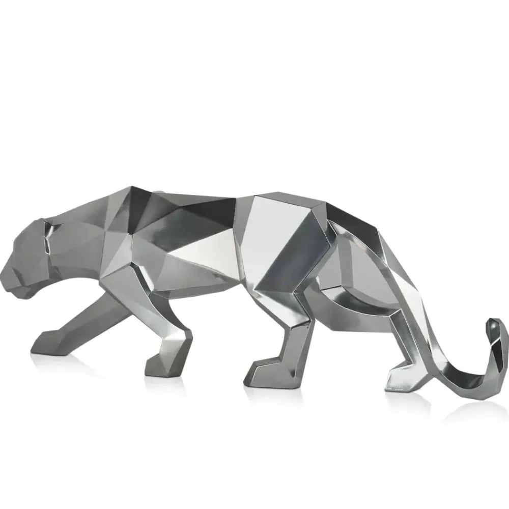 Polygon Panther 31cm Silver Resin Indoor Sculpture