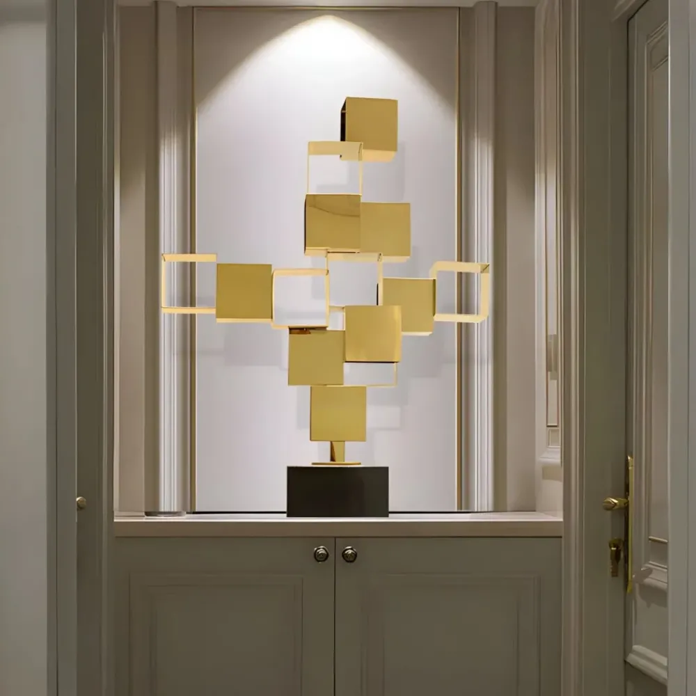 Beyond its aesthetic appeal the abstract cuboid composition invites contemplation evoking a sense of balance and harmony. Whether displayed in a private residence, public venue or professional setting this piece elevates its surroundings with its timeless form and reflective beauty. More than just an artwork it serves as a conversation starter inspiring appreciation for the interplay of structure and space. With its meticulous craftsmanship and contemporary allure this stainless steel sculpture embodies both artistic innovation and enduring elegance.