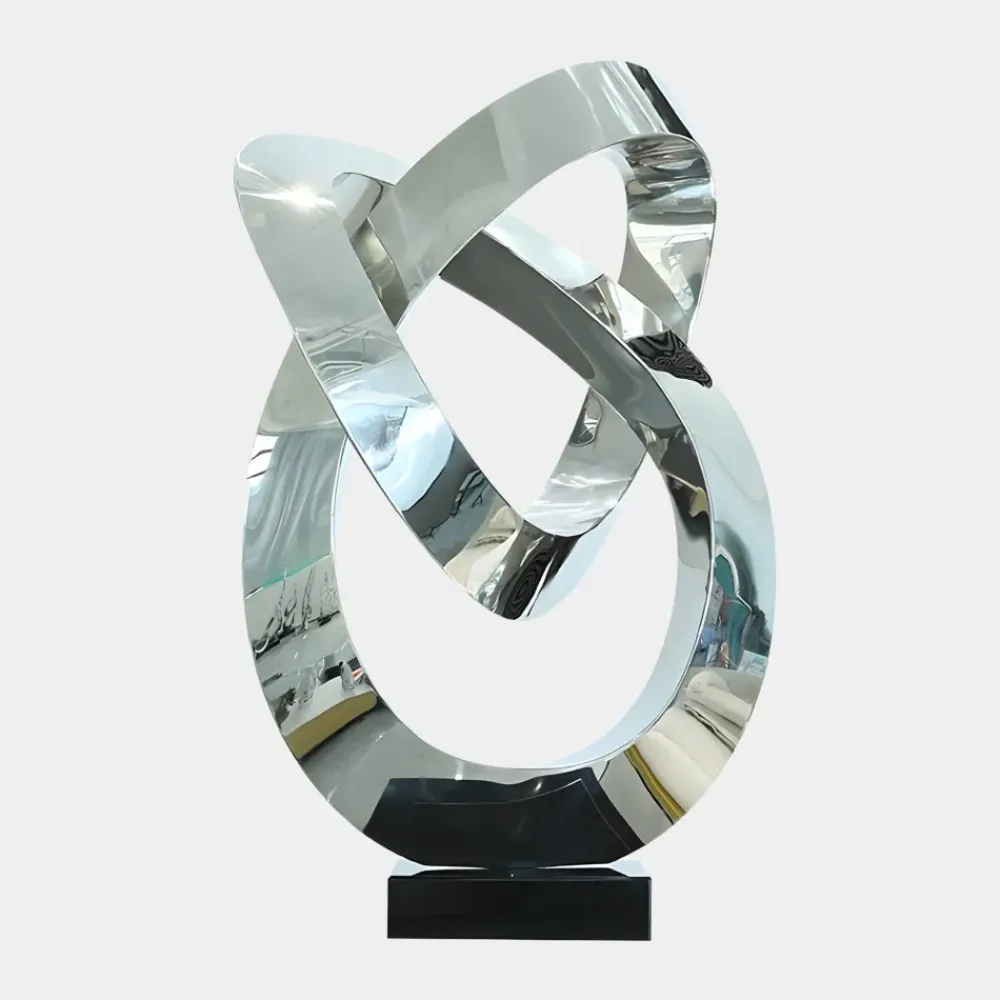 Designed for both indoor and outdoor settings this abstract sculpture blends contemporary aesthetics with enduring craftsmanship. The weather-resistant stainless steel construction ensures durability making it an ideal choice for gardens, patios and landscaped areas where it can engage with natural light and open environments. Indoors, it complements various design styles from sleek modern spaces to eclectic interiors adding depth and refinement to living rooms, offices or grand entryways.