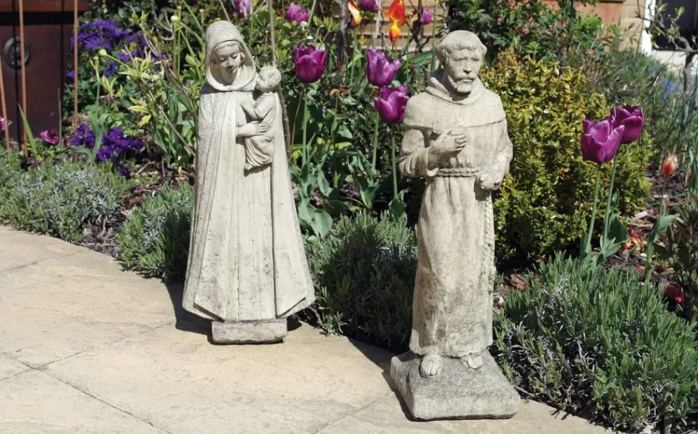 Madonna & Friar Monk Stone Garden Statues.