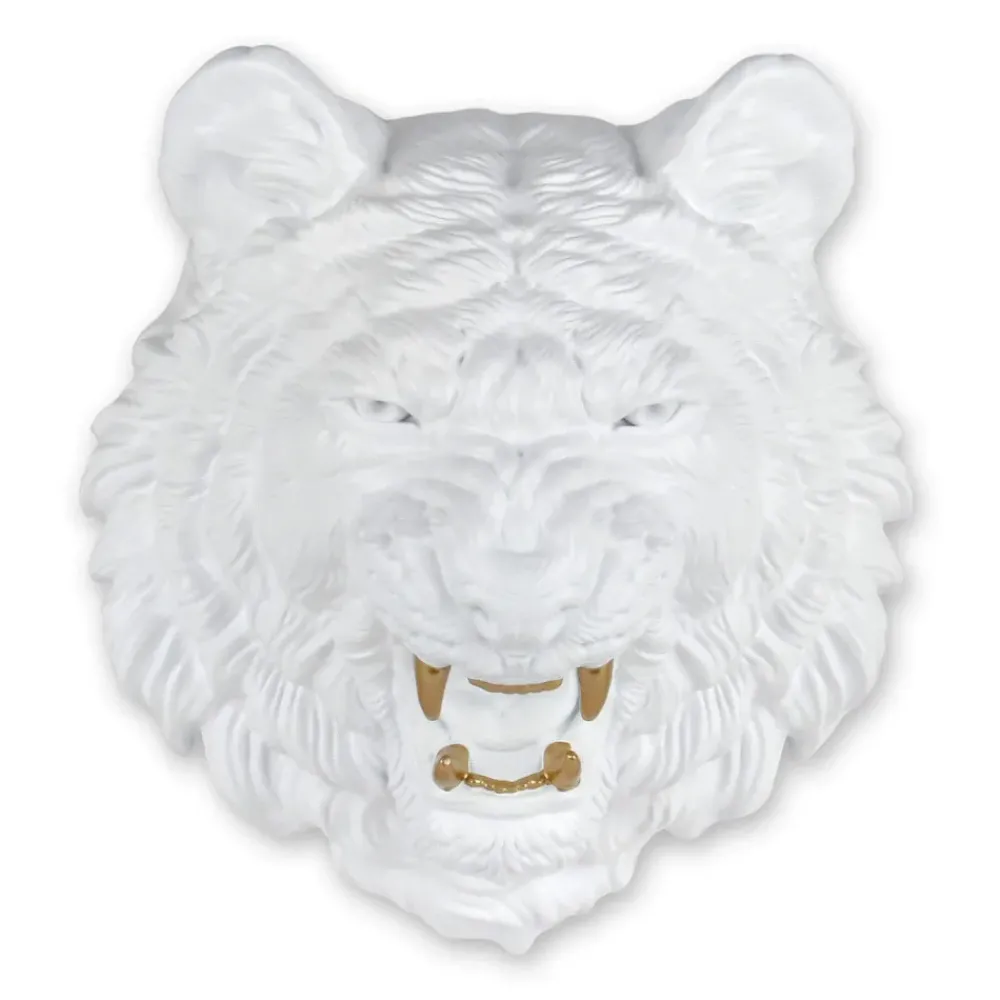 Mystic Tiger 37cm White Resin Wall Sculpture