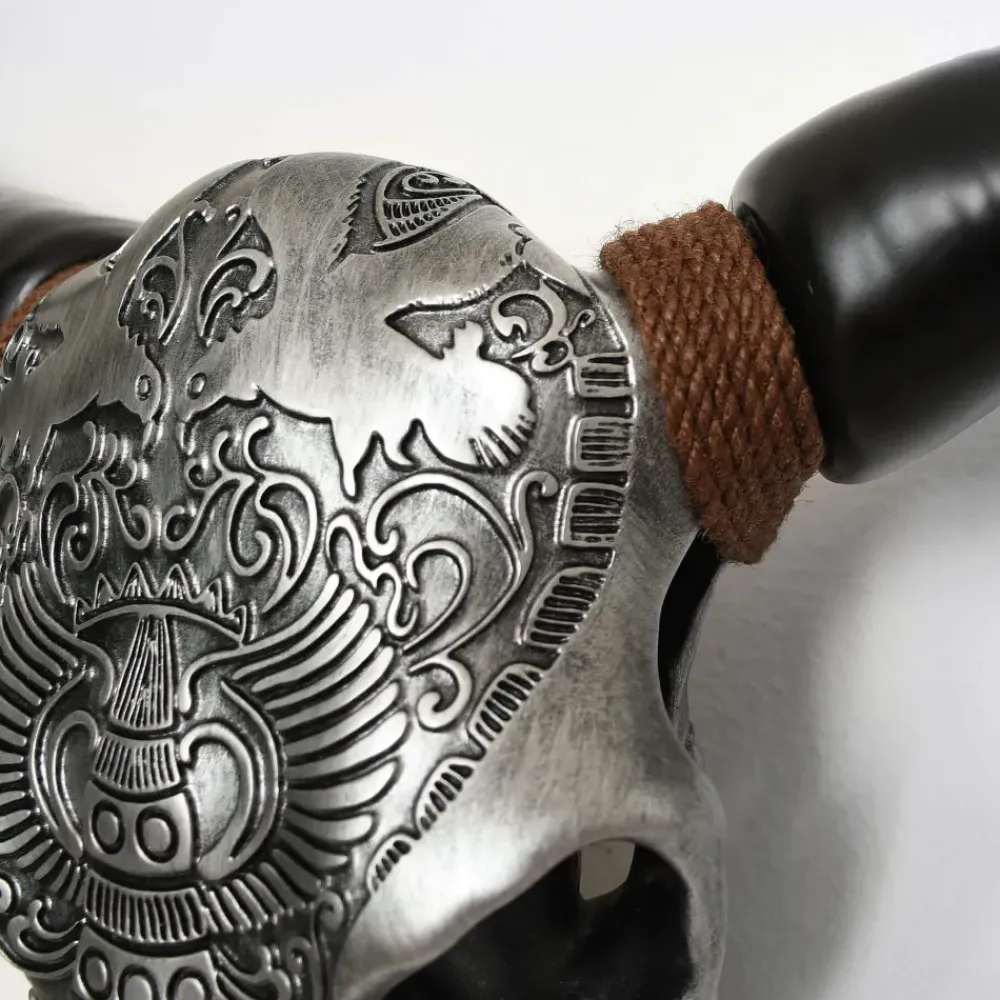 Sacred Buffalo 63cm Silver Resin Wall Sculpture