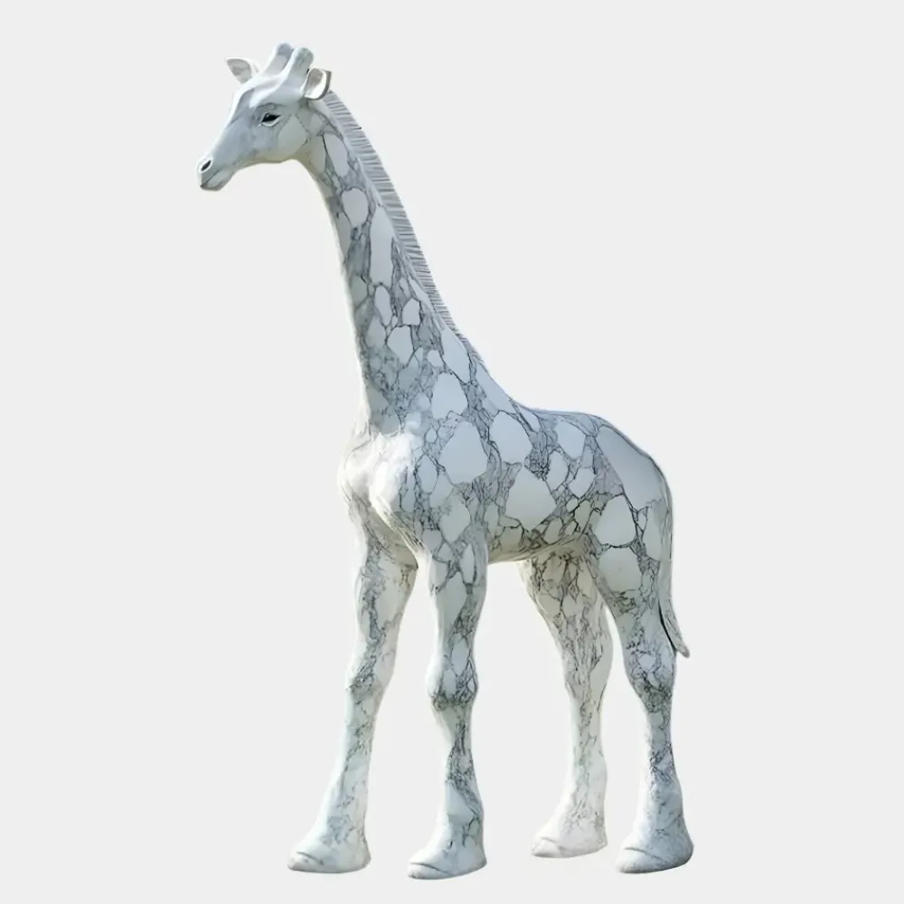 The Gigantic Giraffe Statue offers a stunning focal point for gardens, courtyards and open spaces. Handcrafted from premium white marble this statue masterfully captures the elegance of a giraffe with its elongated neck, lifelike features and strong graceful stance. The natural grey veining in the marble ensures each piece is truly unique adding depth and character to the design.