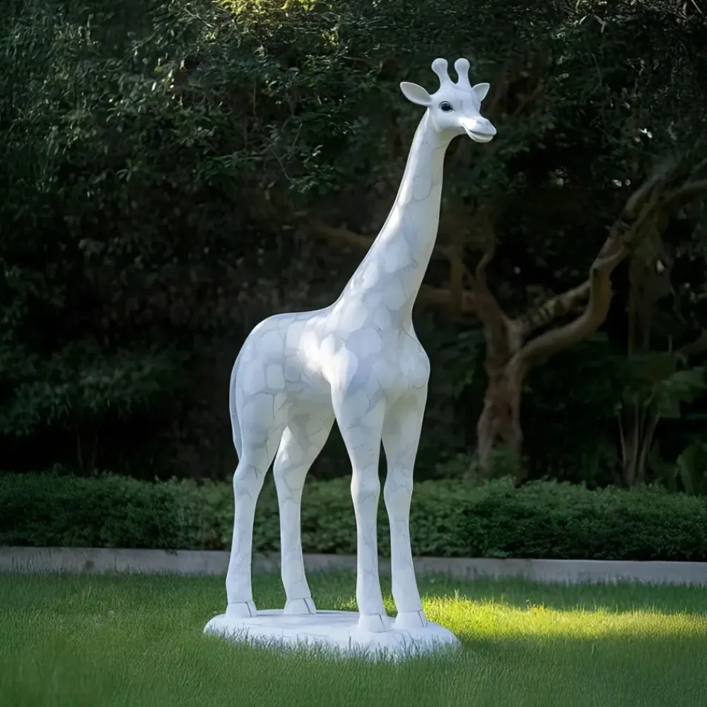 The Gigantic Giraffe Statue offers a stunning focal point for gardens, courtyards and open spaces. Handcrafted from premium marble this statue masterfully captures the elegance of a giraffe with its elongated neck, lifelike features and strong graceful stance. The natural grey veining in the marble ensures each piece is truly unique adding depth and character to the design.