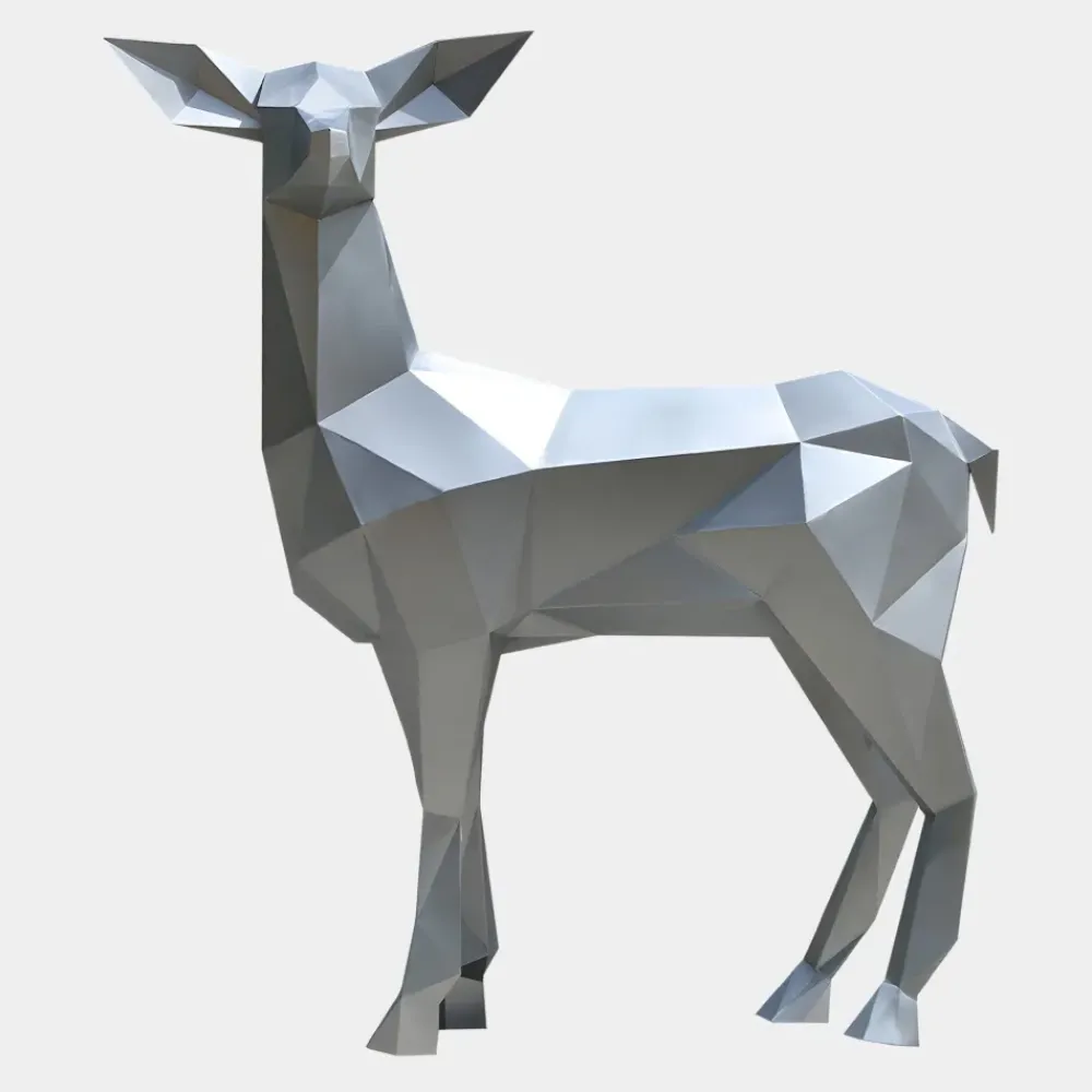 The Deer Geometric Sculpture is an exceptional masterpiece that seamlessly blends modern artistry with the raw untamed essence of wildlife. Meticulously crafted from premium stainless steel, this sculpture reinterprets the iconic rhinoceros through sharp angular facets and clean geometric lines. The metallic surface adds a sleek contemporary finish that beautifully reflects natural light, making the piece appear dynamic and ever-changing throughout the day. This bold artwork captures the rhino’s strength and resilience, offering a compelling visual statement that enhances any outdoor setting.